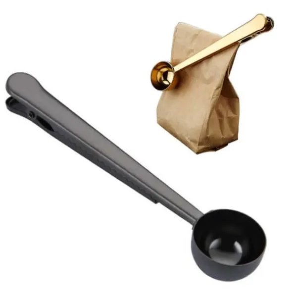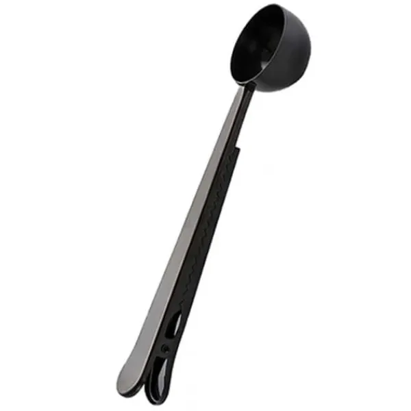 Förslut enkelt och smidigt ditt kaffe med denna praktiska kombinerade kaffemått med klämma i svart.
