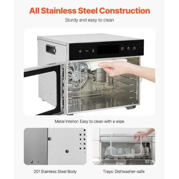 - Hållbar och Lätt att Rengöra: Tillverkad helt i rostfritt stål, denna maskin är hållbar, rostbeständig och frigör inte skadliga ämnen vid höga temperaturer. Den släta insidan och diskmaskintåliga brickorna gör underhållet enkelt och smidigt.