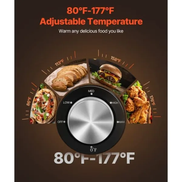 - Långvarig värme: Justerbart temperaturområde på 80℉-177℉ med snabb uppvärmning.