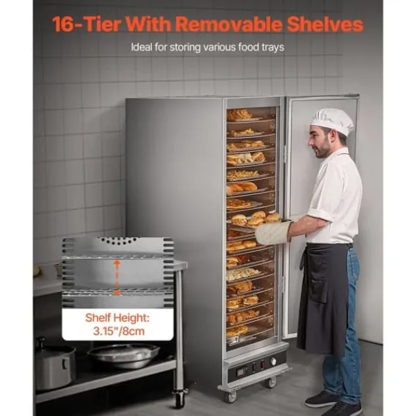 - Rymlig design: 16 rymliga hyllor som rymmer 1/1 GN-pannor i full storlek.