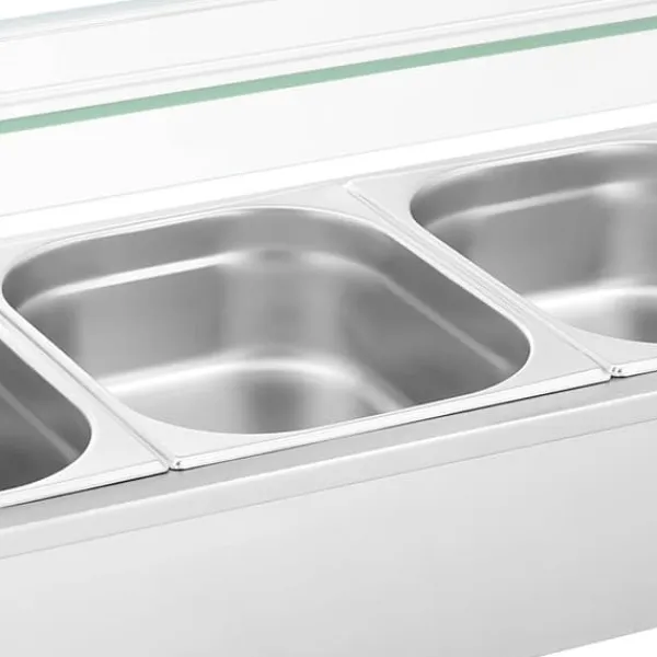 Denna bain marie imponerar framför allt med sin stora volym. De 3 GN-behållarna (GN 1/2) med lock rymmer en stor mängd mat som kan värmas eller varmhållas samtidigt. Detta innebär enorma tidsbesparingar och är särskilt fördelaktigt vid förberedelse av mat inför stora evenemang eller under rusningstid i restauranger, matsalar och hotell. Dessutom kan GN-behållare av andra storlekar användas i denna bain marie och kombineras med varandra.