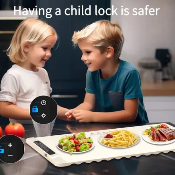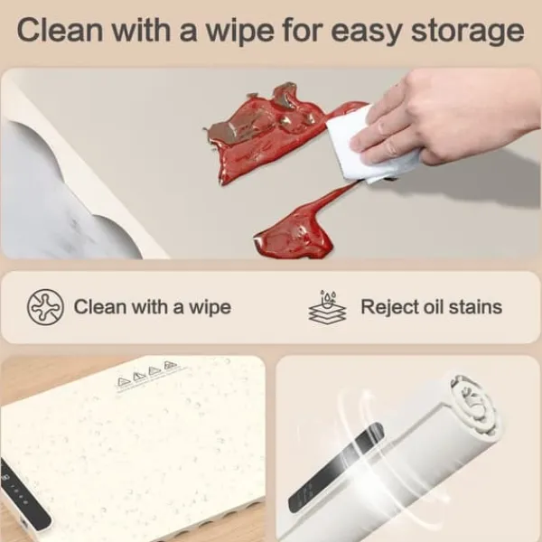 3. Barnlås och säker skyddsanordning: Vår uppvärmningsmatta för mat är utformad med ett barnsäkerhetslås för att skydda små händer från oavsiktlig kontakt. Säkerhetslåsfunktionen säkerställer säkerhet under användning, förhindrar olycksdrift hos barn, lämplig för hembruk. Elektrisk värmebricka är tillverkad av livsmedelsklasse silikonmaterial, vår matvärmematta är hållbar, fläcksäker och oljetäker. Den kan rullas upp för förvaring utan olyckliga rynkor, vilket säkerställer långvarig kvalitet. lätt att spara utrymme, flexibel och kompakt lagring, enkel användning.
