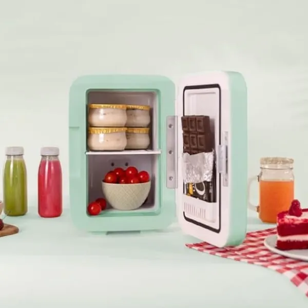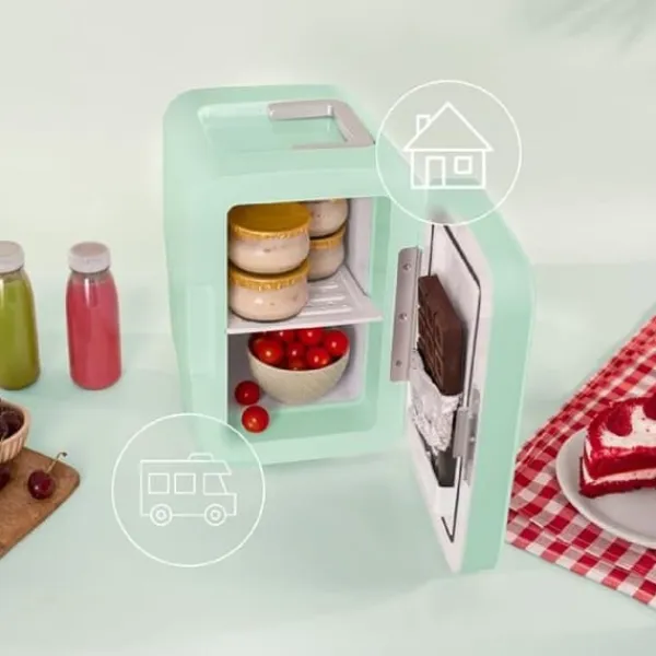 Mini-kylskåpet Bolero MiniCooling 6L Bahamas Mint är perfekt för att hålla dina drycker och livsmedel i den perfekta temperaturen. Kompakt och portabel, det fungerar på 12V eller 220V, perfekt för hemmet, bilen eller resor. Med ett temperaturintervall på 5 till 65 °C erbjuder det både kylnings- och uppvärmningsfunktioner.
