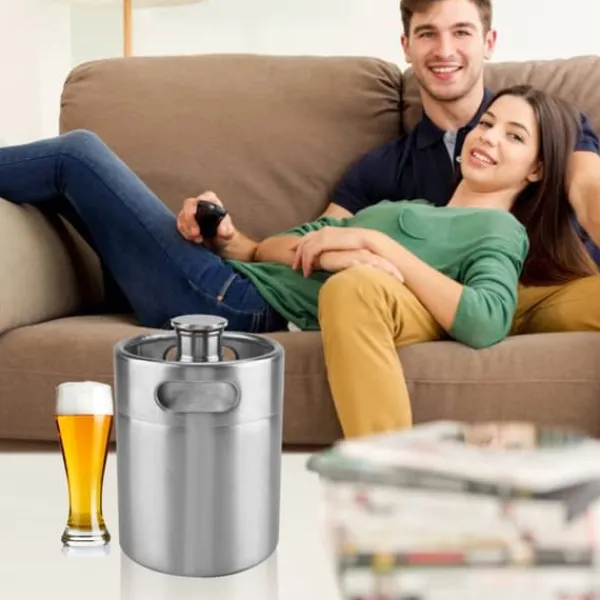 Välkommen till vår butik! Detta är en mycket användbar och praktisk öltunna tillverkad av livsmedelsklassat rostfritt stål, vilket garanterar stabilitet, hållbarhet och rostbeständighet. Den bibehåller kolsyratrycket under längre perioder och håller din öl färsk. Toppen har ett spirallock som sluter tätt, vilket gör den till ett idealiskt tillbehör för hemmavinmakare. Dina drycker håller sig kallare och lagras längre jämfört med glas, utan risk för att de går sönder. För extra bekvämlighet kan du fästa en kran på den, så att du kan skapa din egen kolsyrade eller platta hantverksöl. Finns i tre storlekar: 2L (ca 13,5 x 17,5 cm), 3,6L (ca 13,5 x 29,5 cm) och 5L (ca 17,8 x 26,5 cm). Produkten är helt ny, silverfärgad och inkluderar en mini-öltunna per beställning. Nöjdhet: Våra kunder är vår högsta prioritet. Om du upptäcker några produktproblem efter att du mottagit varorna, såsom skador eller felaktig mängd varor, vänligen kontakta säljaren omedelbart. Vi gör vårt bästa för att ge dig tillfredsställande kundservice.