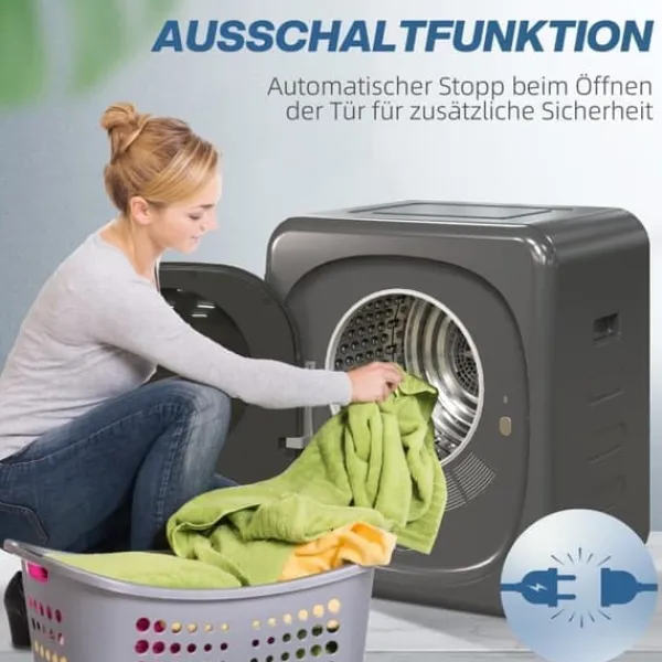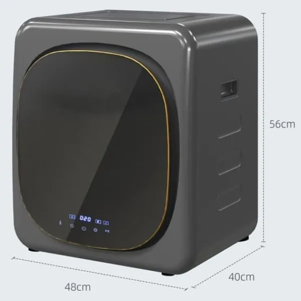 Mini Torktumlare – 2.5kg kapacitet, 6 program, LED-touchskärm, 800 W, upp till 60℃, fristående eller väggmonterbar, överhettningsskydd, grå