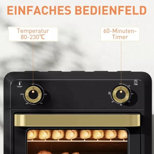 - ✔ Timern på miniugnen med varmluft kan ställas in upp till 60 minuter, vilket förenklar tidsplaneringen