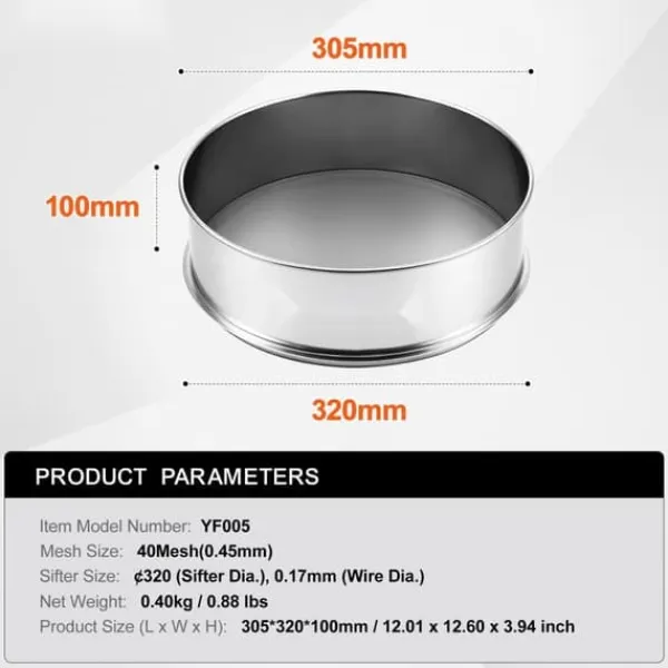 Siktstorlek: 320 mm (Sifter Dia.), 0,17 mm (Wire Dia.)