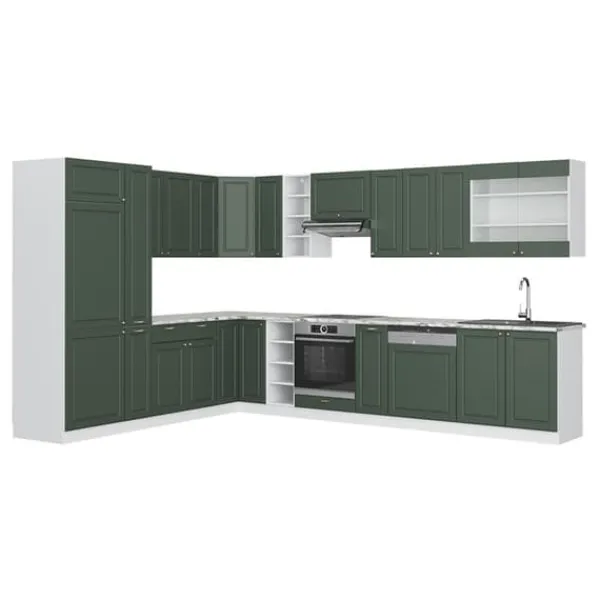 MATERIAL: Det modulära hörnköket är tillverkat av lättskött 16 mm spånskiva, belagd med melaminharts. Alla fronter på köksenheterna är gjorda av högkvalitativ MDF.