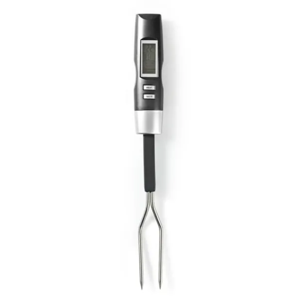 Denna köttermometer gör det otroligt enkelt, även för oerfarna hemmakockar, att tillaga stora köttbitar till perfektion. För att göra det ännu enklare har termometern 6 förinställda temperaturer, plus ett antal standardnivåer för tillagning (rare, medium, etc.). Eftersom termometern också fungerar som en köttgaffel kan du mäta kärntemperaturen medan du vänder hamburgare, till exempel. Välj önskad inställning, stick in spetten i köttet och inom några sekunder vet du om det är klart att ta bort från grillen. Spetten i rostfritt stål är hygieniska och lätta att rengöra. Termometern levereras med en upphängningskrok för enkel förvaring. Med ett temperaturområde på upp till 250 grader kan du använda denna köttermometer för alla typer av rätter och köttberedningar.