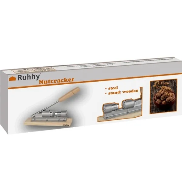 Tillverkad av robust rostfritt stål och monterad på en stabil träställning, står den här nötknäckaren stadigt på varje köksbänk. Med sin funktionalitet och eleganta design, erbjuder denna nötknäckare en överlägsen användarupplevelse och är en investering som håller i åratal.