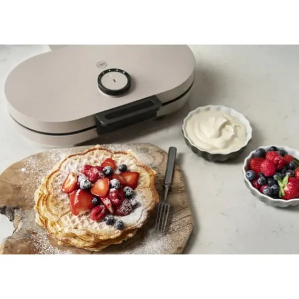 Electa Double-våffeljärnet värms snabbt upp tack vare sin effekt på 1200 watt, så att du kan börja grädda direkt. Med den justerbara temperaturen kan du välja mellan fem olika gräddningsnivåer för att få precis den krispighet och gyllene färg du önskar. Den höga temperaturen säkerställer att våfflornas yta blir jämnt krispig och vackert färgad. De keramiska non-stick gräddningsytorna gör rengöringen enkel, vilket gör att järnet håller sig i gott skick länge.