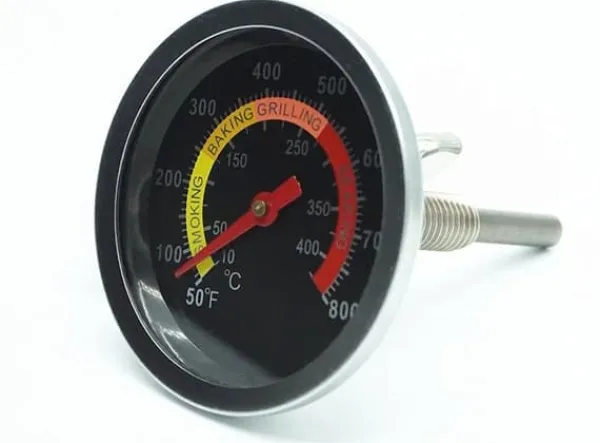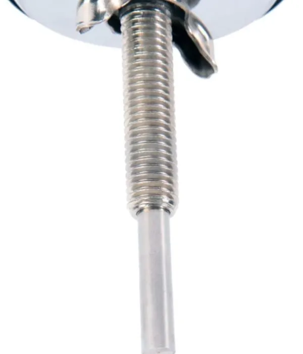 Den stora 2 3/8″ (ca 6 cm) ratten gör det enkelt att läsa och bedöma temperaturen på maten. Stammen är 2 7/8″ (ca 7,3 cm) lång. -