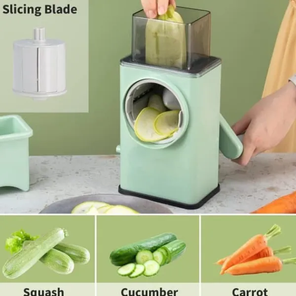 Denna multifunktionella manuella grönsakshackare är ett oumbärligt verktyg i köket. Med hjälp av det vassa rostfria stålet och det användarvänliga handvevhjulet kan du enkelt skära grönsaker som potatis, morötter, gurka och lök. Perfekt för att förbereda sallader, soppor eller stuvade grönsaker.