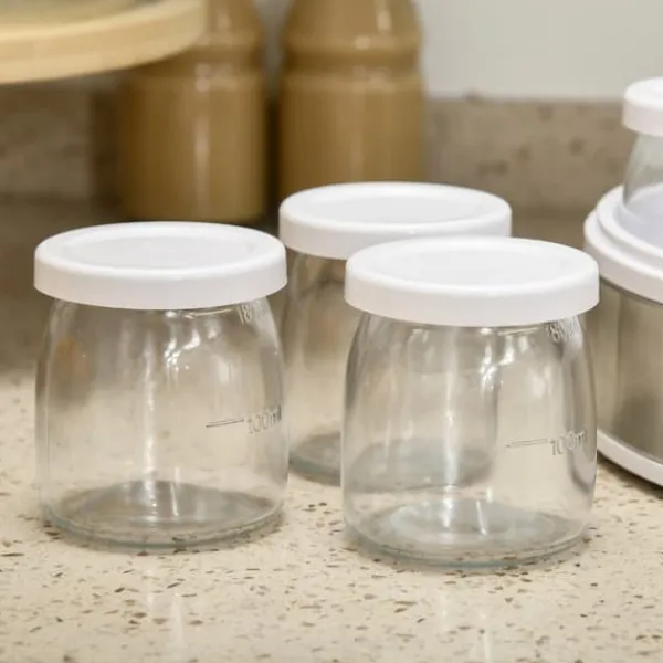 Sju glasburkar på 180 ml: Med en total kapacitet på 1260 ml kan du jäsa mer yoghurt samtidigt och med samma energi. En sats räcker i en vecka och låter dig göra sju olika smaker. Separata burkar underlättar förvaring och förhindrar kontaminering. Njut av hemlagad ekologisk yoghurt var som helst – dela den med familjen eller ta den med dig på språng.