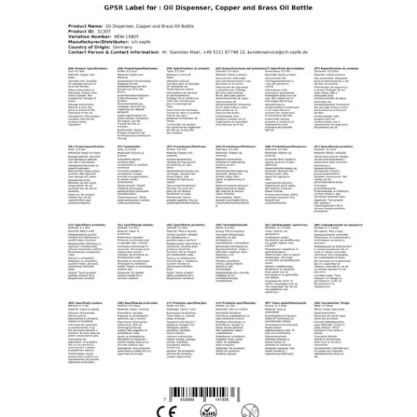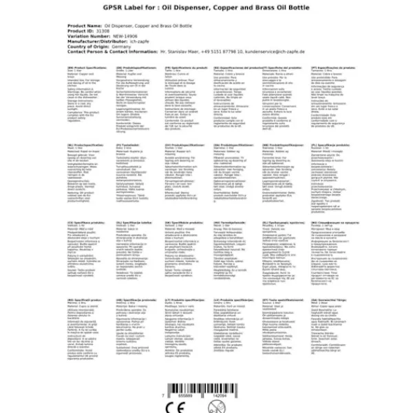 Oljekanna, olivoljekanna – koppar och mässing Denna traditionella oljekanna i koppar och mässing har en kapacitet på 0,5 liter och är det perfekta föremålet att använda i ditt kök för att lagra olja. Egenskaper: •Tillverkad i koppar och mässing •Kapacitet på 0,5 liter •Traditionell design Denna oljekanna är tillverkad i högkvalitativ koppar och mässing, vilket ger den en praktisk och hållbar design. Den har en perfekt kapacitet för att lagra olja i ditt kök, och den traditionella designen gör den till en vacker och funktionell del av din köksinredning. Använd denna oljekanna för att förvara olivolja eller andra oljor, och du kommer att ha en praktisk och stilren lösning för dina matlagning behov.