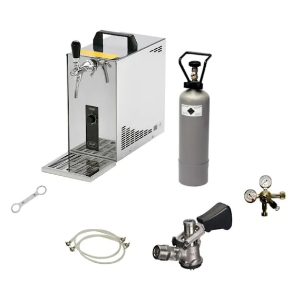 Komplett uppsättning, Öltapp, ölkylare, ölmaskin, öl dispenser, ölautomat, öltappingssystem PYGMY 25, en linje torr kylare, 35 liter/h -Bierkoffer, waterchiller, Green Line kapacitet: 35 L/h vid 10 ° C TD klar att användas på bara 2-4 minuter reglerområde 2 till 10 grader Den moderna och robust konstruktion garanterar lång livslängd och enkel transport kylteknik är genom 45% mer effektiv Består av: •PYGMY 25 ölutmatare en linje torrt kylanordning gjord av rostfritt stål, 35 liter/h •liten torr kylning Öltapp tillverkad av rostfritt stål•uteffekt: 35 l/h •inkl. Rostfritt stål droppskål•inkl. Efter kylningskompensator•i 2-4 min. Minuter redo•Kontroll intervallet 2 till 10 grader•torr kylning Öltappn en linje•Tekniska värden:•267 Watt/230V/50Hz, 1,16A•Storlek:B/D/H 170x280x325 mm•i vikt: nbsp 14,5; KG•Egenskaper:•anslutningar: John Guest 3/8 tum•tryckreducerare en linje CO2 för öl Öltapp 3 bar•CO2 – flaska, 2,0 kg•CO2 slang klar 1,5 m•öl Bong John Guest – 3/8 och 5/8 skruv kontakt 2,00 m – helt klar•kolsyra nyckel captive•tapphuvud, ditt val: ingen, platt, stationsvagn, korg, Köpi, 5 liters fatadapter Kontroll av öltemperaturen En av de största funktionerna hos Lindr PYGMY 25 Öltapp är dess förmåga att kontrollera öltemperaturen. Du kan justera temperaturen från +2 till +10 grader, vilket gör att du kan servera ölen vid precis den temperatur du vill ha den. Detta ger en perfekt kall och uppfriskande ölupplevelse! Robust och modern design Lindr PYGMY 25 ölmaskin har en modern och robust design som garanterar långvarig hållbarhet och enkel transport. Du kan ta med din ölautomat var du än går – den är så lätt och portabel att du kan njuta av god öl på språng! Perfekt för hemmabruk Vill du få en bit av krogen hem till ditt eget kök? Lindr PYGMY 25 Öltapp är det perfekta valet för dig! Med denna ölmaskin kan du hälla upp din favoritöl när du vill, precis som på krogen. Hög kapacitet – 35 liter per timme Med en kapacitet på 35 liter per timme är detta den perfekta ölautomaten för både små samlingar och större evenemang. Servera en stor mängd gäster snabbt och enkelt med denna högkvalitativa ölmaskin. Hög kvalitet på din öl Denna ölautomat levererar alltid högsta kvalitet på din öl. Kontrollen över trycket och temperaturen säkerställer att din öl är perfekt kolsyrad och serverad vid önskad temperatur varje gång. Beställ din Lindr PYGMY 25 Öltapp nu och njut av den perfekta ölupplevelsen direkt hemma i ditt eget kök!
