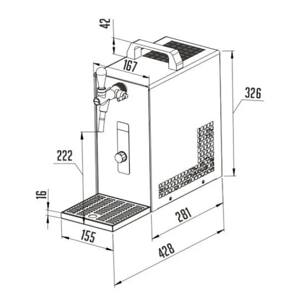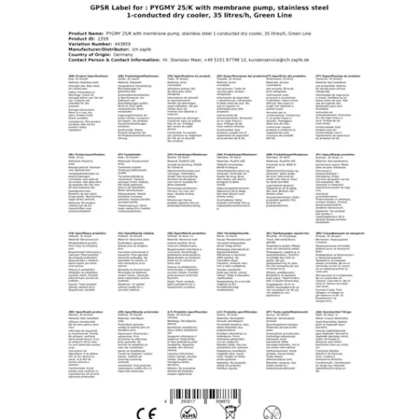 Öltapp PYGMY 25 / K med membranpump, 1-linje torrkylare av rostfritt stål, 35 liter/h, Green Line Kapacitet: 35 liter kyld öl per timme justerbar vid en temperatur av +3 till +10 ° C Klar att användas på 2-4 minuter 1-sidigt torrkylare Den moderna och robusta designen garanterar lång livslängd och enkel transport Kyltekniken är 45% effektivare Green Line – miljövänligEgenskaper •PYGMY 25K ölautomat är perfekt för alla hemmabarer eller mansgrottor •Utrustad med en ensidig torrkylare för att hålla din öl kyld vid en perfekt temperatur på +3 till +10 °C •Miljövänlig maskin med 45 % ökad effektivitet jämfört med andra modeller •Kapacitet på 35 l kyld öl per timme justerbar vid en temperatur på +3 till +10 °C •Färdig att använda på bara 2-4 minuter •Modern och robust design garanterar lång livslängd och enkel transport •Inget behov av koldioxid tack vare membranpumpen som bygger upp trycket i fatet •Kompensatorkran efter kylning ingår •Ny modell med kraftfullare kompressor, 15 % högre prestanda och certifierad kylvätska R290 •Överensstämmer med EU-förordning 2021 Investera i PYGMY 25K ölautomat för ett pålitligt och effektivt sätt att njuta av kyld öl på fat. Beställ din idag och upplev dessa fördelar: •Ha alltid öl på fat – du behöver inte ständigt fylla på ditt kylskåp med skrymmande flaskor och burkar •Spara tid och utrymme – den kompakta designen hos denna ölkran ger gott om plats för andra föremål•Minimalt röra – droppbrickan i rostfritt stål säkerställer att överflödigt öl fångas upp och enkelt rengörs •Var miljövänlig – Green Line-serien minskar energianvändningen och stödjer ett hållbart boende •Perfekt för ölentusiaster – njut av smaken och friskheten av öl som aldrig förr •Användarvänlig – justera temperaturen på din öl till din önskade smak •Lätt att underhålla – rengör regelbundet öllinjerna med ett rengöringskit för att säkerställa bästa resultat •Minska risken för öl som blir dålig eller går ut – denna ölautomat håller din öl färsk i upp till några veckor efter öppning •Enkel installation – kräver endast ett vanligt eluttag och ett fat av ditt val •Kompatibel med de flesta faten och ölmärken – välj din egen favoritöl och upptäck nya smaker och sortiment