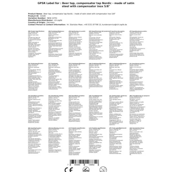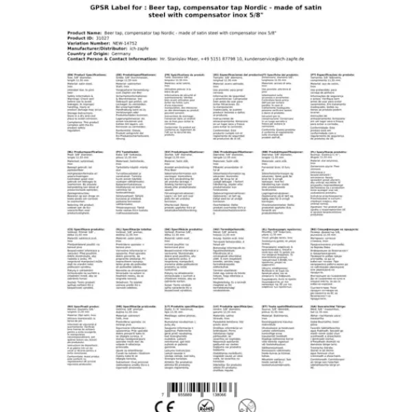 Tappkran – Nordic, med kompensatorskaft inox 5/8 Med tappkranen från Tappkran får du en kompensatorölkran som passar perfekt för din bar, restaurang eller hemmabryggning. Kranen har en bakre stålaxel och alternativ 5/8 tillgänglig användbar gänglängd 35/55/65 mm monteringspip inuti ø7,5. Egenskaper: •Kompensatorölkran med flödesreglering •Bakre stålaxel •Alternativ 5/8 tillgänglig användbar gänglängd 35/55/65 mm monteringspip inuti ø7,5 Med Tappkran – Nordic, med kompensatorskaft inox 5/8 får du en hållbar och pålitlig öltapp som ger dig möjlighet att servera en kall och fräsch öl varje gång. Passa på att investera i denna högkvalitativa tappkran idag! Komponenter i tappkran: •Kompensator •Kolv •Skaft •Kulförslutning Tappkranen är enkel att montera och passar perfekt för både proffs och hemmabryggare. Med dess flödesreglering kan du enkelt justera flödet för att servera öl med precis rätt mängd skum och kolsyra. Med Tappkran – Nordic, med kompensatorskaft inox 5/8 får du en tappkran av högsta kvalitet som håller länge och ger en perfekt servering varje gång. Skaffa din tappkran idag och var redo att servera kalla drycker med stil!
