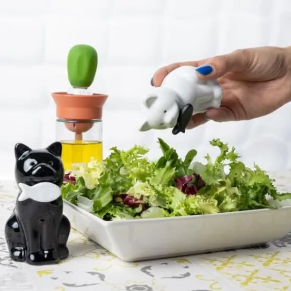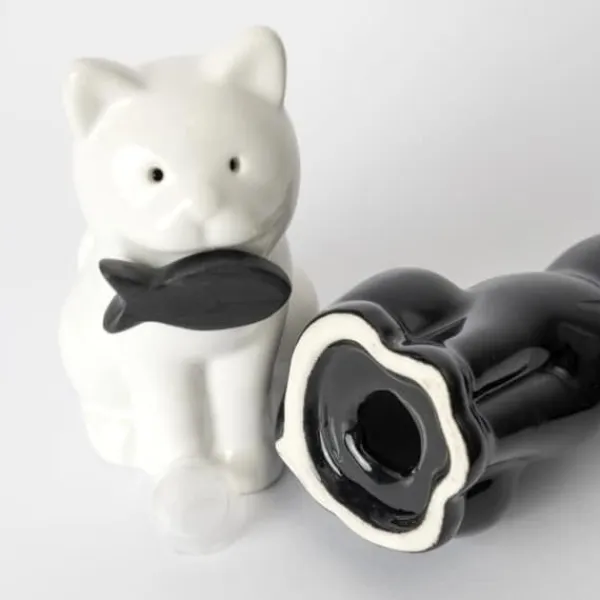 Väck din kattliga sida med detta charmiga kattformade salt- och pepparkar! Med sina bedårande kattansikten och fisken i munnen, kommer detta kattduo att göra varje måltid till en perfekt upplevelse. Med detta saltkar och pepparkar.