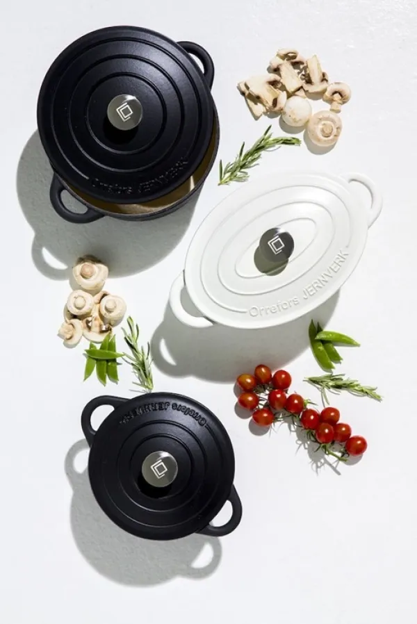 Grytan har en rund form och en utsida i matt finish. Locket pryds av texten ”Orrefors Jernverk. Grytan kan användas på alla värmekällor inklusive induktion. Gjutjärnsgrytan från Orrefors Jernverk kommer dessutom i en fin presentbox vilket gör den perfekt att ge bort som gåva!