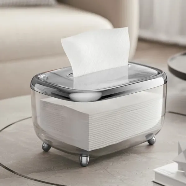 2. Rensa låda: Den genomskinliga designen av denna servettlåda möjliggör enkel övervakning av vävnadsnivåer, så att du aldrig tar slut oväntat.