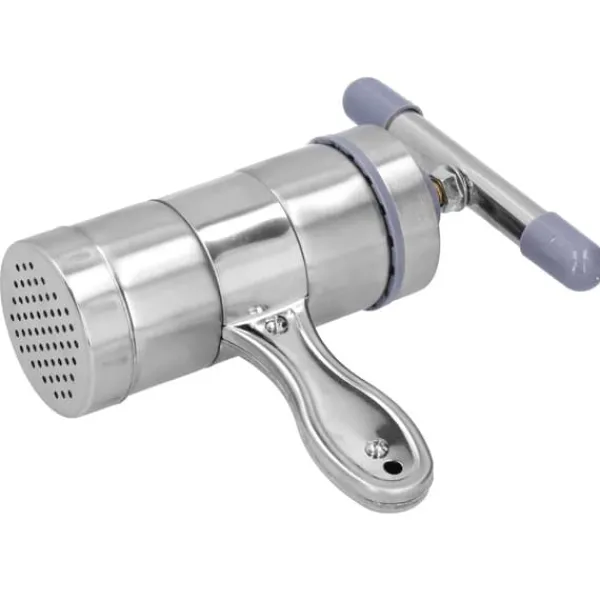 Välkommen till vår butik! Denna manuella nudelpress är enkel att använda och kan göra läckra nudlar på bara några sekunder. Den levereras med 5 formhuvuden för enkel installation och utbyte, vilket gör att du kan skapa nudlar i olika tjocklekar. Rengöringen är enkel eftersom den kan diskas direkt med vatten, vilket gör den idealisk för hemmabruk eller restaurangbruk. Tillverkad av högkvalitativt rostfritt stål är den rostfri, korrosionsbeständig, stark och hållbar. Detta praktiska köksredskap är mångsidigt för att göra nudlar eller extrahera juice. Produkten är 100 % helt ny, tillverkad av rostfritt stål, väger cirka 650 g och mäter cirka 18,5 x 14 cm med en handtagslängd på cirka 14 cm. Din beställning inkluderar 1 nudelmaskin och 5 formhuvuden. Nöjdhet: Våra kunder är vår högsta prioritet. Om du upptäcker några produktproblem efter att du mottagit varorna, såsom skador eller felaktig mängd varor, vänligen kontakta säljaren omedelbart. Vi gör vårt bästa för att ge dig tillfredsställande kundservice.