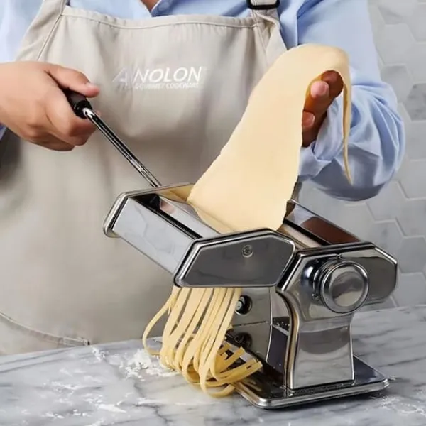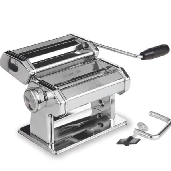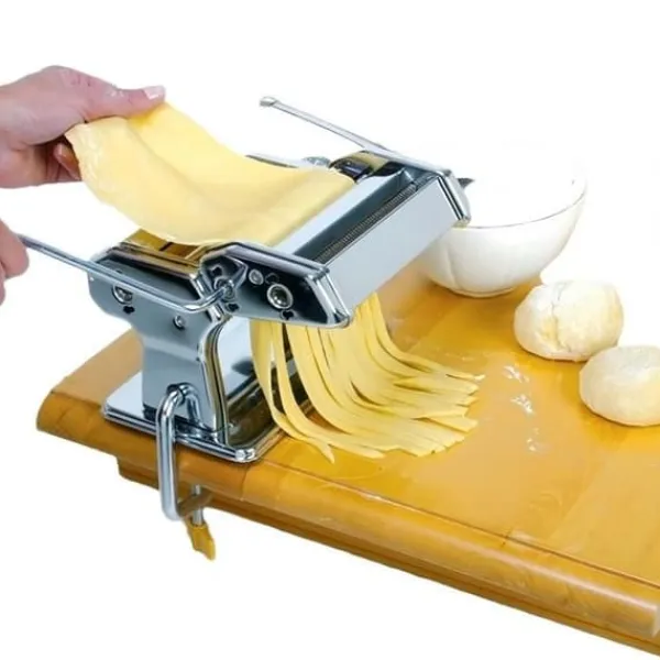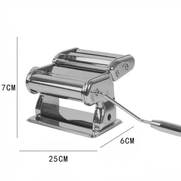 Upptäck LUNAVOs manuella pastamaskin TD®, designad i krom och rostfritt stål med en elegant finish i grått och svart. Kompakt och lätt, den mäter 20 x 20,5 x 15,5 cm och väger 2,77 kg, vilket gör den lätt att hantera och förvara. Den är diskmaskinssäker, vilket underlättar rengöringen. Perfekt för att göra färsk pasta hemma, denna maskin kombinerar modern stil med funktionalitet. Den är avsedd för hushållsbruk och levereras i ett stycke. Dimensionerna varierar från 15 cm till 27 cm, med ett genomsnitt på 19 cm. Den förpackade vikten är 2,3 kg. Njut av enkelheten och effektiviteten hos denna pastamaskin för att skapa dina favorit recept.