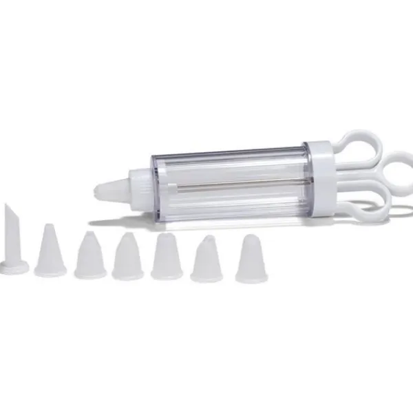 Med Patisse-spritsmunstycket kan du enkelt skapa vackra dekorationer på tårtor, cupcakes och andra bakverk. Det 19 cm stora munstycket levereras också med 7 olika munstycken. Färg: transparent/vit.