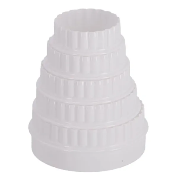 Ett set med 5 kakformar med 4 tandade runda utstickare och 1 förvaringsbehållare. Tål maskindisk. Diameter: 5,5-9,5 cm. Material: Plast. Färg: Vit.