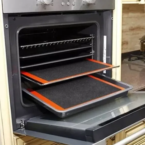 Tillverkad av livsmedelsklassad glasfiber och silikon, den här mattan är inte bara värmebeständig utan även non-stick, vilket gör den idealisk för användning som ugns- eller pannfoder, bakplåt eller matlagningsmatta. Dessutom kan den användas för ångkokning och vattentömning, vilket ökar dess mångsidighet.