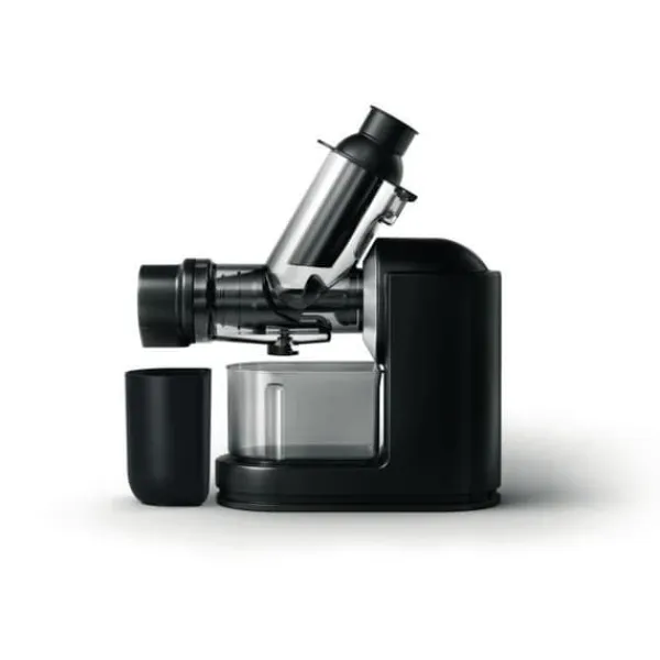 Specialfunktioner: XL-skorsten för stora frukter och grönsaker – Inkluderade tillbehör: Receptbok – Eleffekt: 150 Watt – Sladdförvaring: Ja