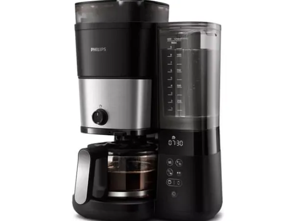 Philips All-in-1 Brew HD7888 Kaffebryggare med kvarn, Droppande kaffebryggare, 1,25 l, Kaffebönor, Inbyggd kvarn, 1000 W, Svart, Silver