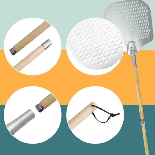Denna perforerade pizzaspade är utformad för att enkelt glida under pizzor och bakverk, vilket tillåter mjöl att falla igenom och förhindrar att det bränns. Dess trähandtag kan justeras till två längder för komfort och säkerhet, vilket gör den mångsidig för pizza-, bröd- och flamkuchenberedning.