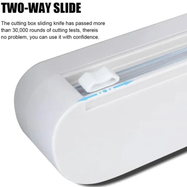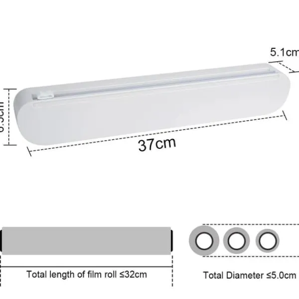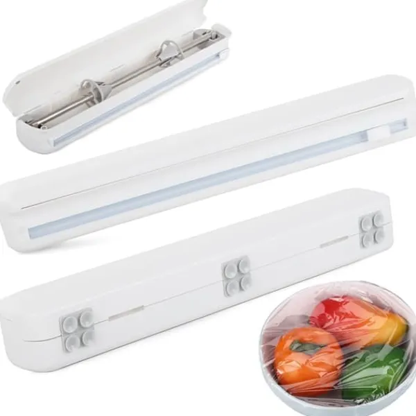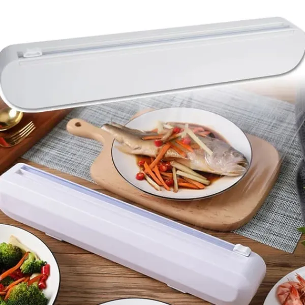 Gör din vardag i köket smidigare med denna praktiska foliedispenser. Den är utformad för att enkelt skära av önskad mängd matfilm, frukostfolie eller aluminiumfolie med ett enda drag. Dispensern är utrustad med en vass skärblad och en rörlig rulle där folien placeras. Tack vare de självhäftande silikonklistermärkena kan du fästa den var som helst i köket. Perfekt för snabb och enkel förvaring av dina matvaror.
