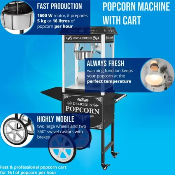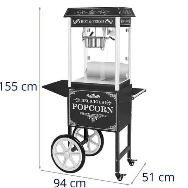 Popcornmaskin med vagn – Retrodesign – Svart