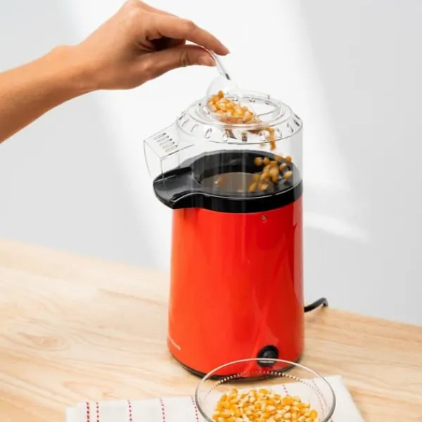 En varmluftspopcornmaskin som är idealisk för att njuta av läckert och hälsosamt hemgjort popcorn med familjen, lättlagad på bara några minuter. Det behövs ingen olja eller smör. Inkluderar mätskopa. Säkerhetstermostat. Effekt: 1200 W.