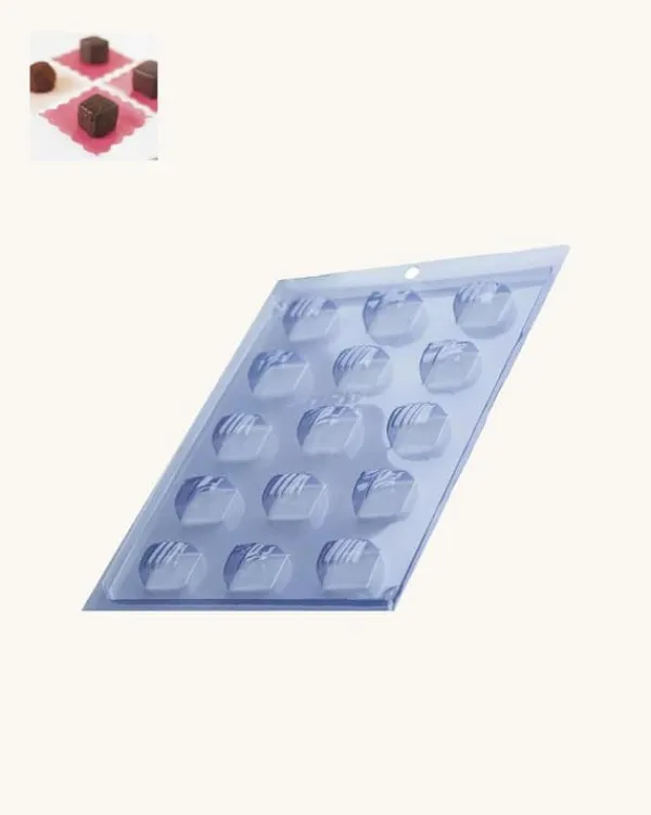 Med denna Porto Formas Simple Mold kan du skapa professionella praliner. Fyll bara på botten av PET-formen med choklad upp till kanten. Låt stelna och tryck sedan ut chokladen.