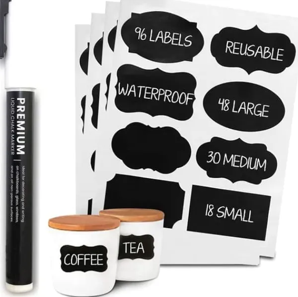 Personliga etiketter är ett måste vid alla speciella tillfällen så som jul, födelsedag, cocktailparty, bröllop och baby shower. Sätt dina etiketter på tackkort, matstationer eller gör personliga vinglas och etiketter för flaskor. Eller varför inte skapa ordning och reda hemma. Dessa självhäftande griffeletiketter är perfekta för märkning av brukar till exempelvis kryddor, marmelad, godis, sylt, kakor och bakingredienser men även till flaskor, lunchlådor, korgar och kontorstillbehör. Bara fantasin sätter gränser.Etiketterna är avtagbara och kan återanvändas. De är vattentåliga och kan diskas i diskmaskin.Skriv enkelt önskad text med den vita pennan som medföljer. Torkar snabbt och kladdar inte.Texten får du bort med hjälp av en fuktig trasa.Etikettens storlek är 8,4×4,5. Setet innehåller 48 st etiketter + 1 st penna