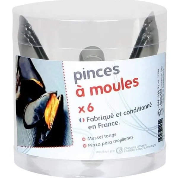 Pinsetter för musslor 6 pinsetter för musslor så att du inte längre smutsar ner dina fingrar medan du njuter. Produkt tillverkad, monterad och förpackad i Frankrike. Egenskaper: Mått: 8 x 2,5 cm. Material: PVC, rostfritt stål. Färg: Silver.