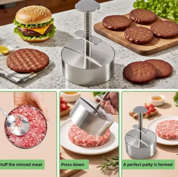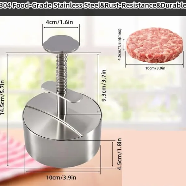Hamburgerpress i Rostfritt Stål 304 – Ergonomisk & Lätt att Rengöra
