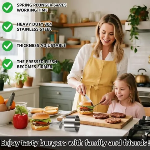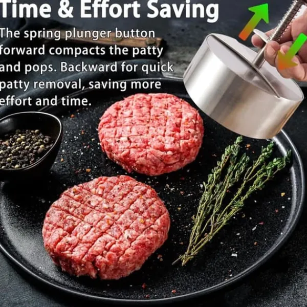 Ergonomisk & enkel användning: Utformad för att spara kraft – både vuxna och barn kan enkelt pressa färsen till jämna och perfekta hamburgarbiffar.