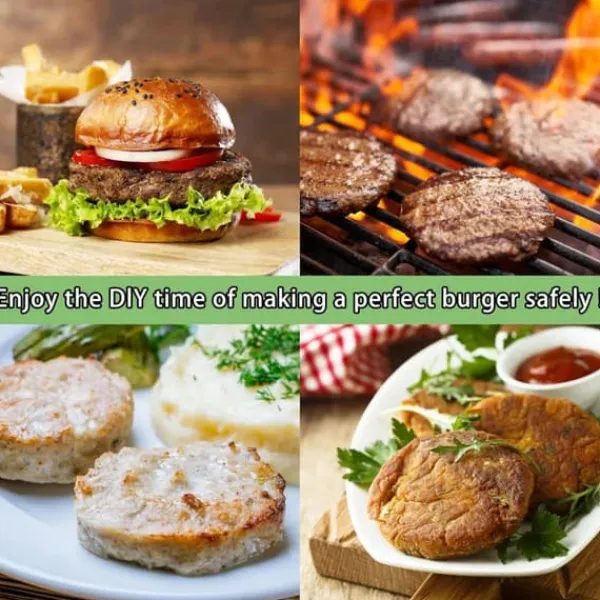 Mångsidig användning: Förutom hamburgare kan pressen även användas till köttbullar, fläsk, nötkött, fisk och andra ingredienser. Passar både inomhusmatlagning och utomhusgrillning/picknick.