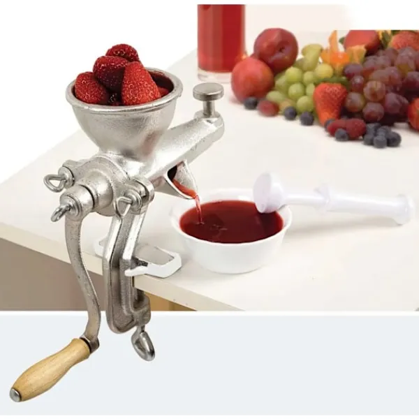 Denna handpress är perfekt för att enkelt pressa saft från dina favoritfrukter och grönsaker, vilket gör det enkelt att njuta av färska och hälsosamma drycker. Med en medföljande filtreringssikt kan du enkelt separera saften från fruktköttet, vilket ger dig en ren och läcker dryck varje gång. Dess smarta konstruktion gör den lätt att rengöra och enkel att använda, vilket gör den till ett måste för alla som älskar att laga mat och njuta av hemlagade juicer.