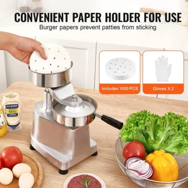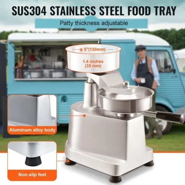 Mångsidig användning: Med en vikt på endast 2,45 kg och sin kompakta storlek är hamburgarpressen perfekt för användning i kiosker, skolköken, hotell, hamburgerrestauranger och mycket mer.