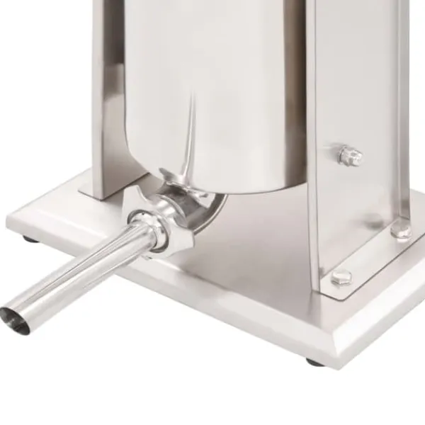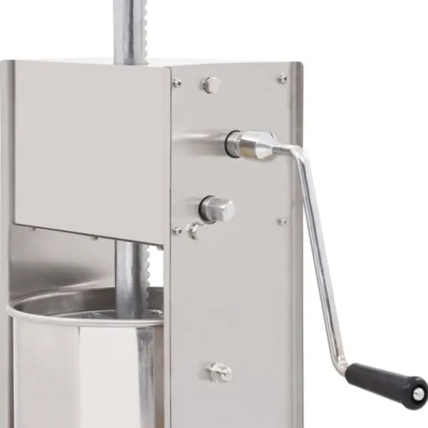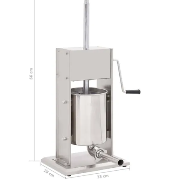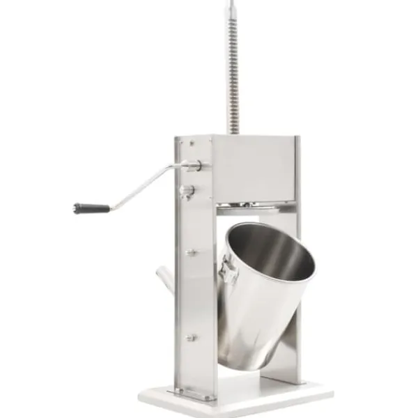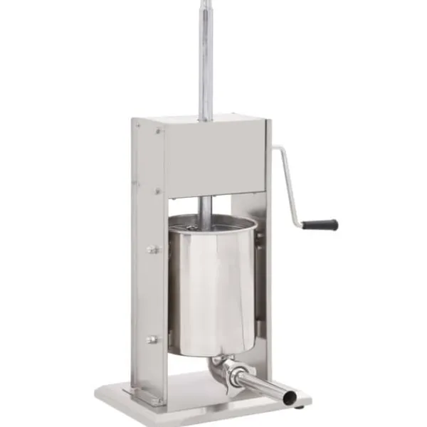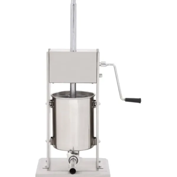 Korvfyllaren i rostfritt stål är utrustad med en 10-liters tratt som går att luta och är avtagbar för att enkelt fylla ditt korvkött, den är också enkel att rengöra. Kolven aktiveras med en vev, som pressar korvmassan genom påfyllningsröret. Dessutom ingår 3 fyllningsrör i olika storlekar för att möta dina olika behov.