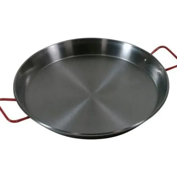 Paellafat i grått polerat stål. Rund ugnsform speciellt designad för att laga paella. Utrustad med 2 sidohandtag för bra grepp. Lämplig för alla gaskällor och för ugnen. Kan diskas i diskmaskin. Diameter: 50 cm. Alla värmekällor inklusive induktion.