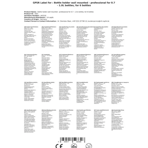 Professionellt Roterbar Flaskeholder för 0,7 – 1,0L flaskor – Roterbar Flaskeholder för 6 flaskor SAFE amp; amp; LÖNSAM – för 0,7-1,0Liter- flaskor – gör din sprit erbjuder ett blickfång – därigenom öka försäljningen – tillverkad av robust metall för lång livslängd – Konstruktionen ger en säker tag i sina värdefulla Spirits – enkelt och enkel installation vägggrupphållare (tillgängliga versioner): 2 flaskor 16 x 32 cm, 3 flaskor med 18,5 x 32 cm, 4 flaskor med 41 x 32 cm, 5 flaskor 53 x 32 cm, 6 flaskor 66 x 32 cm, 8 flaskor 90,5 x 32 cm, 10 flaskor med 115 x 32 cm Utan dosering – beställs separat nbsp amp;;
