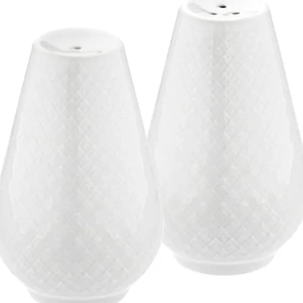 Salt- och pepparset i porslin från Rhombe serien är ett klassiskt och vackert set som pryds av ett rombmönster. De är gjorda av porslin och har en vit silikonpropp på botten för påfyllning som håller hålet tätt.