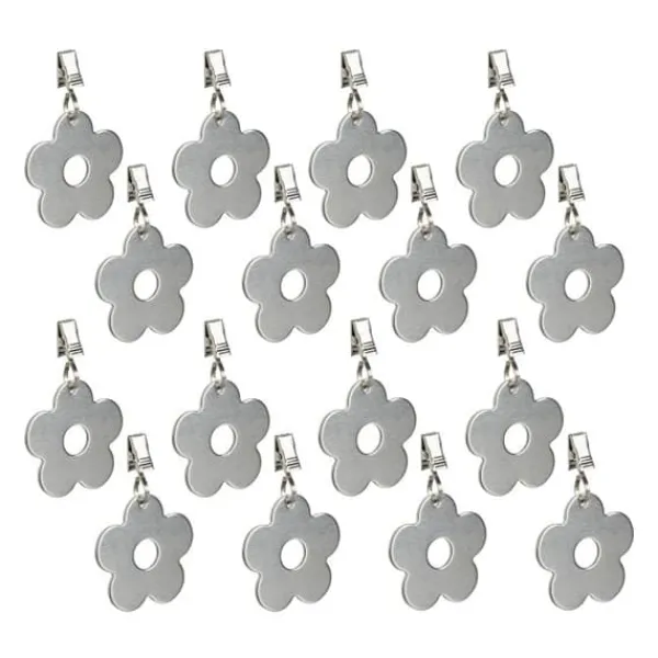 Dukhållare i rostfritt stål Vid en grillfest i trädgården kan en liten vindpust snabbt förvandlas till en kamp med duken. Köp detta set med 16 dukhållare så att du kan äta och dricka i lugn och ro trots en lätt bris. Dukvikterna, som är fästa på duken, ger också en dekorativ touch med sitt tidlösa blommönster. Tillverkade av slitstarkt rostfritt stål, är dessa dukvikter lämpliga för både inomhus- och utomhusdukar.