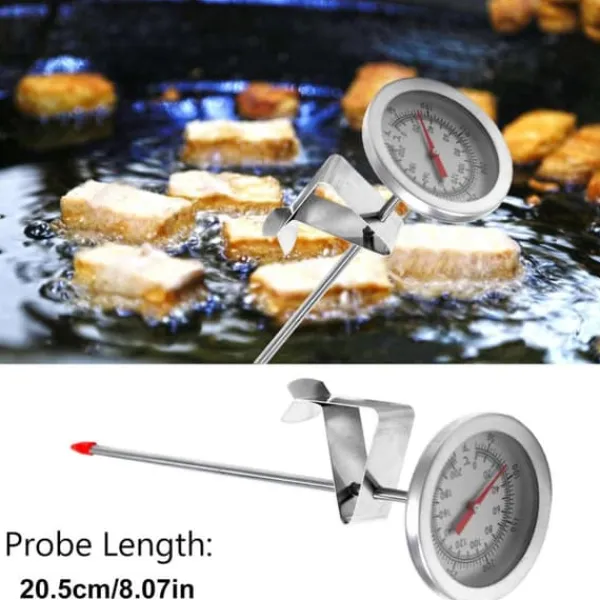 Välkommen till vår butik! Denna oljetermometer i rostfritt stål är utformad för exakt och hållbar temperaturmätning. Den har en enkel urtavla med en svart visare för snabba och noggranna avläsningar. Sonden i rostfritt stål är värmebeständig, vilket säkerställer pålitlig prestanda i miljöer med hög temperatur. Med ett mätområde på 50-550°F är den idealisk för olika matlagningsapplikationer som pommes frites, stekta kycklingvingar, ugnsanvändning och grillning. Sondens längd är cirka 20 cm. Du får 1 oljetermometer. Nöjdhet: Våra kunder är vår högsta prioritet. Om du upptäcker några produktproblem efter att du mottagit varorna, såsom skador eller felaktig mängd varor, vänligen kontakta säljaren omedelbart. Vi gör vårt bästa för att ge dig tillfredsställande kundservice.